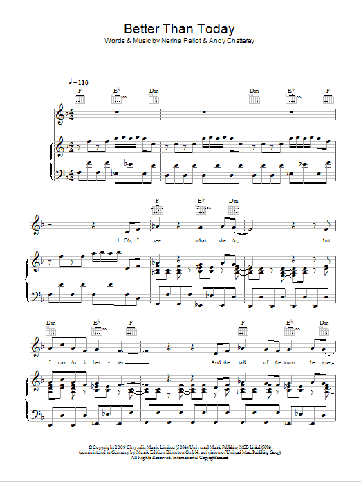 Download or print Kylie Better Than Today sheet music, chords and digital score arranged for Piano, Vocal & Guitar Chords. This Pop score includes 8 page(s).