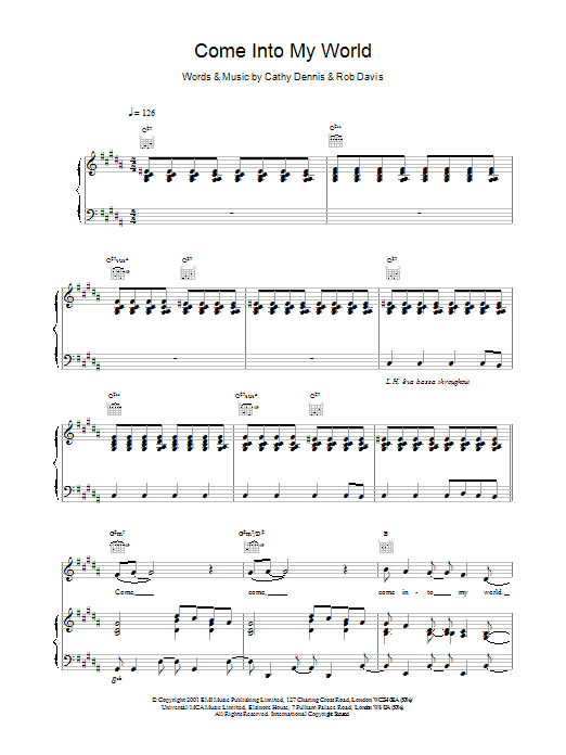 Download or print Kylie Minogue Come Into My World sheet music, chords and digital score arranged for Lead Sheet / Fake Book. This Pop score includes 4 page(s).