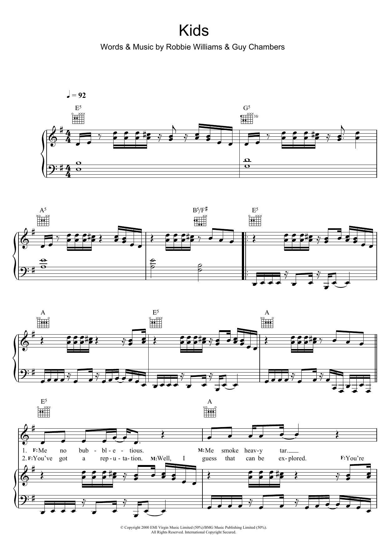 Download or print Kylie Minogue Kids sheet music, chords and digital score arranged for Lead Sheet / Fake Book. This Pop score includes 2 page(s).