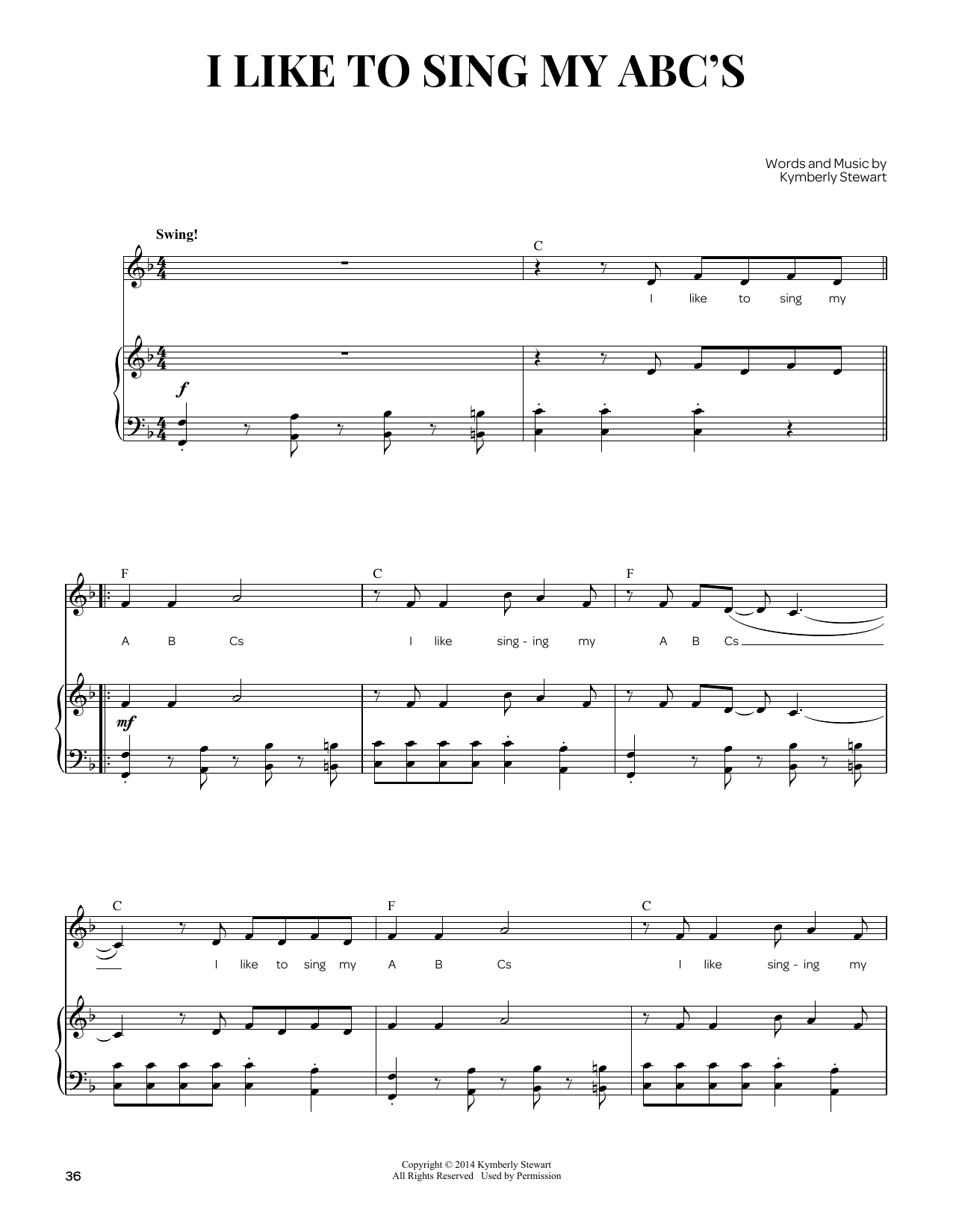 Download or print Kymberly Stewart I Like To Sing My ABC's sheet music, chords and digital score arranged for Piano & Vocal. This Children score includes 3 page(s).