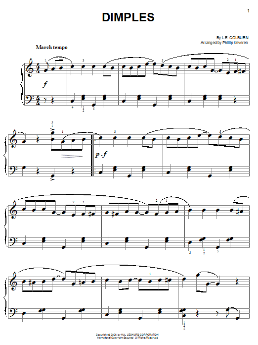 Download or print L.E. Colburn Dimples (arr. Phillip Keveren) sheet music, chords and digital score arranged for Easy Piano. This Children score includes 3 page(s).
