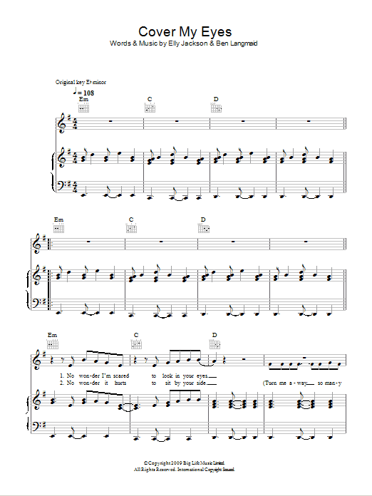 Download or print La Roux Cover My Eyes sheet music, chords and digital score arranged for Piano, Vocal & Guitar Chords. This Pop score includes 5 page(s).