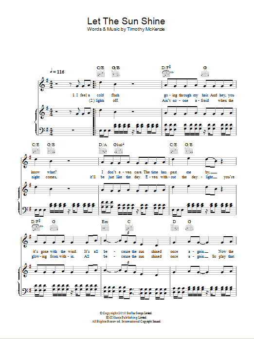 Download or print Labrinth Let The Sun Shine sheet music, chords and digital score arranged for Piano, Vocal & Guitar Chords. This Pop score includes 5 page(s).
