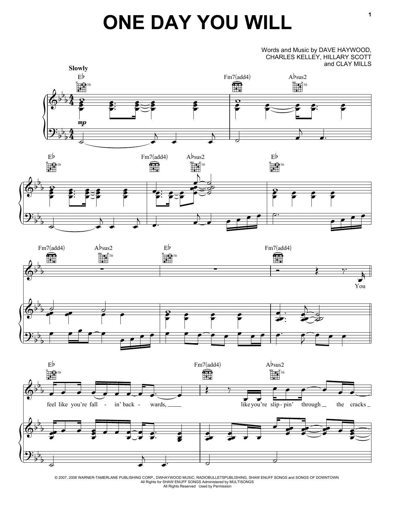 Download or print Lady A One Day You Will sheet music, chords and digital score arranged for Piano, Vocal & Guitar Chords (Right-Hand Melody). This Pop score includes 8 page(s).