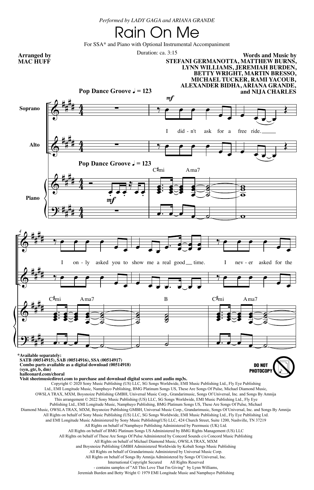 Quick facts Rain On Me (arr. Mac Huff) about digital sheet music