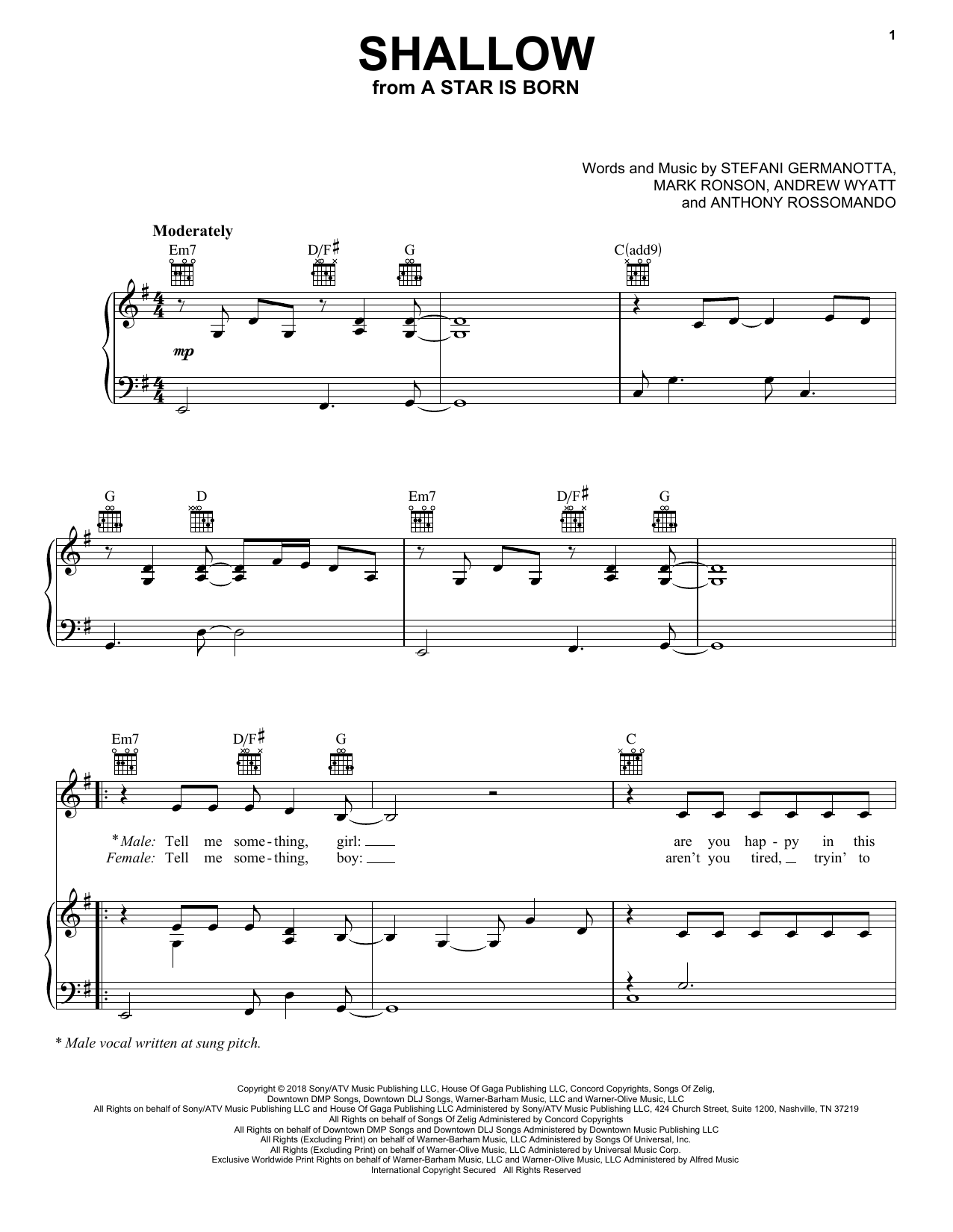 Quick facts Shallow (from A Star Is Born) about digital sheet music