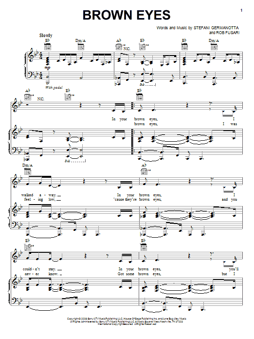 Download or print Lady Gaga Brown Eyes sheet music, chords and digital score arranged for Easy Piano. This Pop score includes 4 page(s).