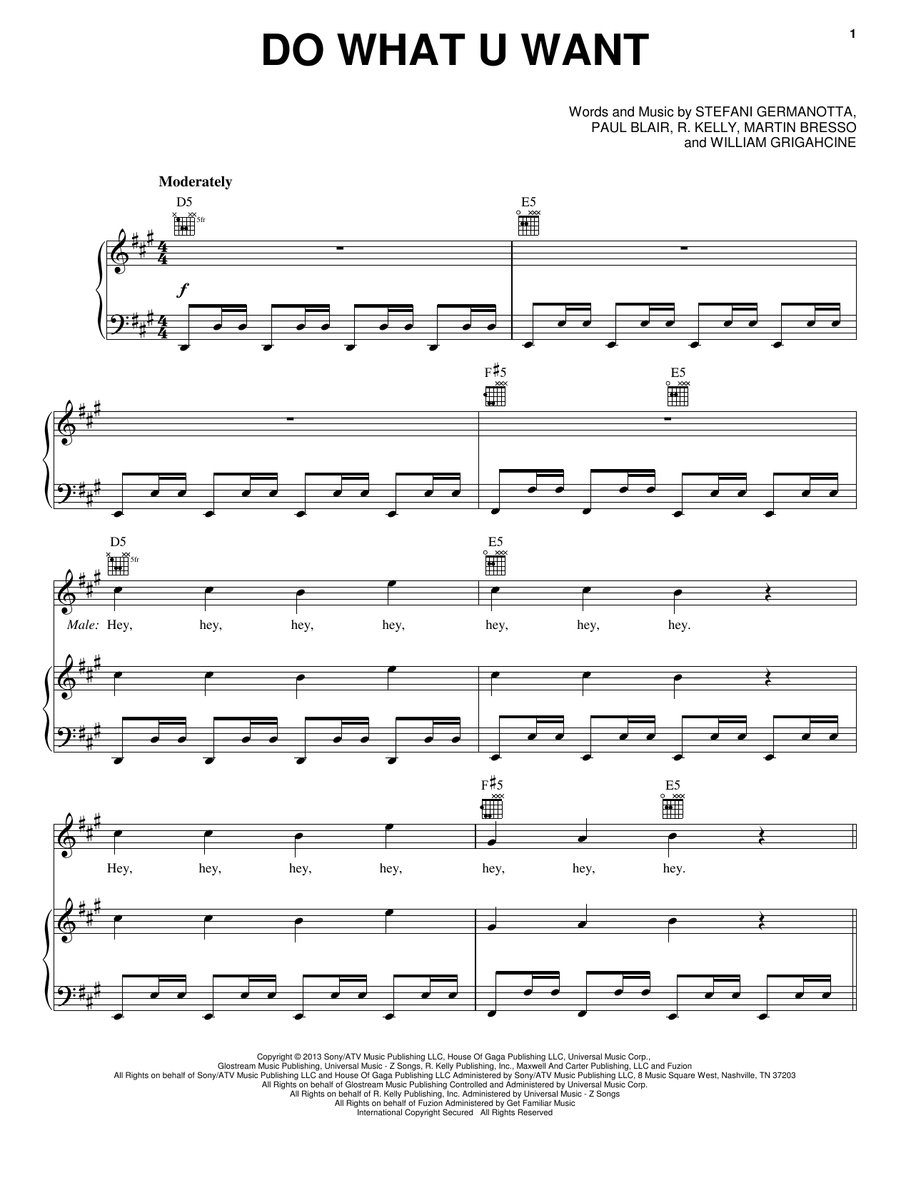 Download or print Lady Gaga Do What U Want sheet music, chords and digital score arranged for Easy Piano. This Pop score includes 9 page(s).