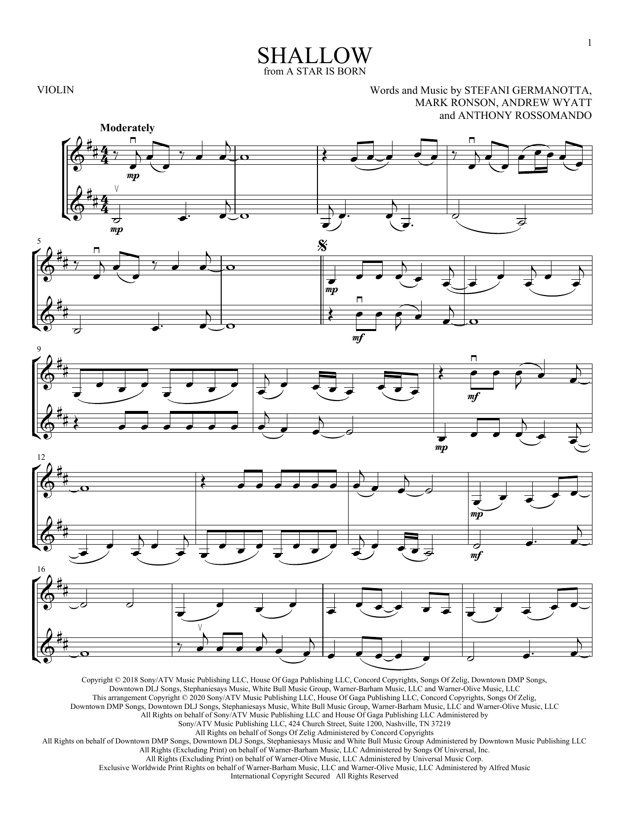 Quick facts Shallow (from A Star Is Born) about digital sheet music