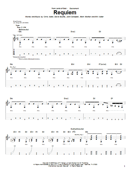 Download or print Lamb Of God Requiem sheet music, chords and digital score arranged for Guitar Tab. This Metal score includes 12 page(s).