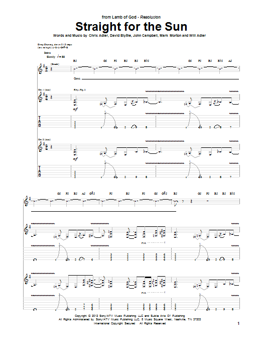Download or print Lamb Of God Straight For The Sun sheet music, chords and digital score arranged for Guitar Tab. This Pop score includes 5 page(s).