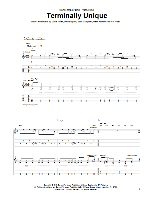 Download or print Lamb Of God Terminally Unique sheet music, chords and digital score arranged for Guitar Tab. This Pop score includes 11 page(s).