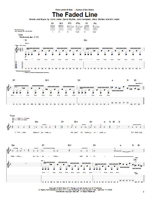 Download or print Lamb Of God The Faded Line sheet music, chords and digital score arranged for Guitar Tab. This Metal score includes 9 page(s).