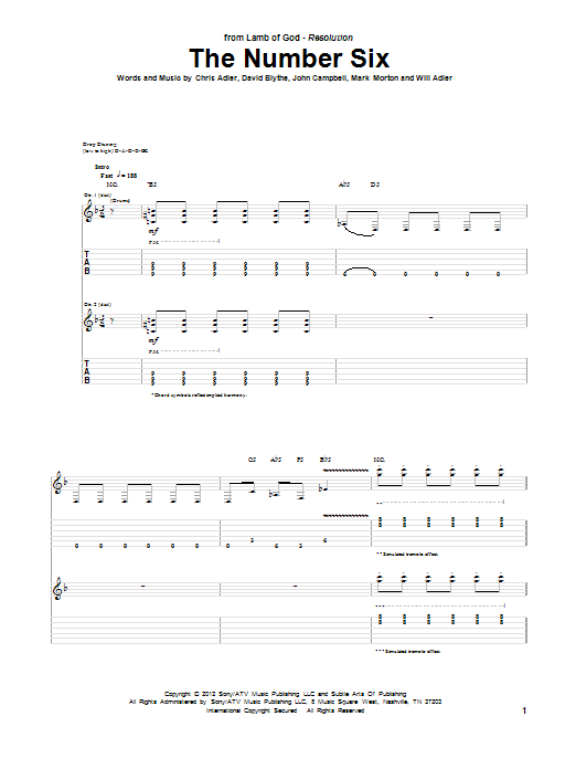 Download or print Lamb Of God The Number Six sheet music, chords and digital score arranged for Guitar Tab. This Pop score includes 18 page(s).