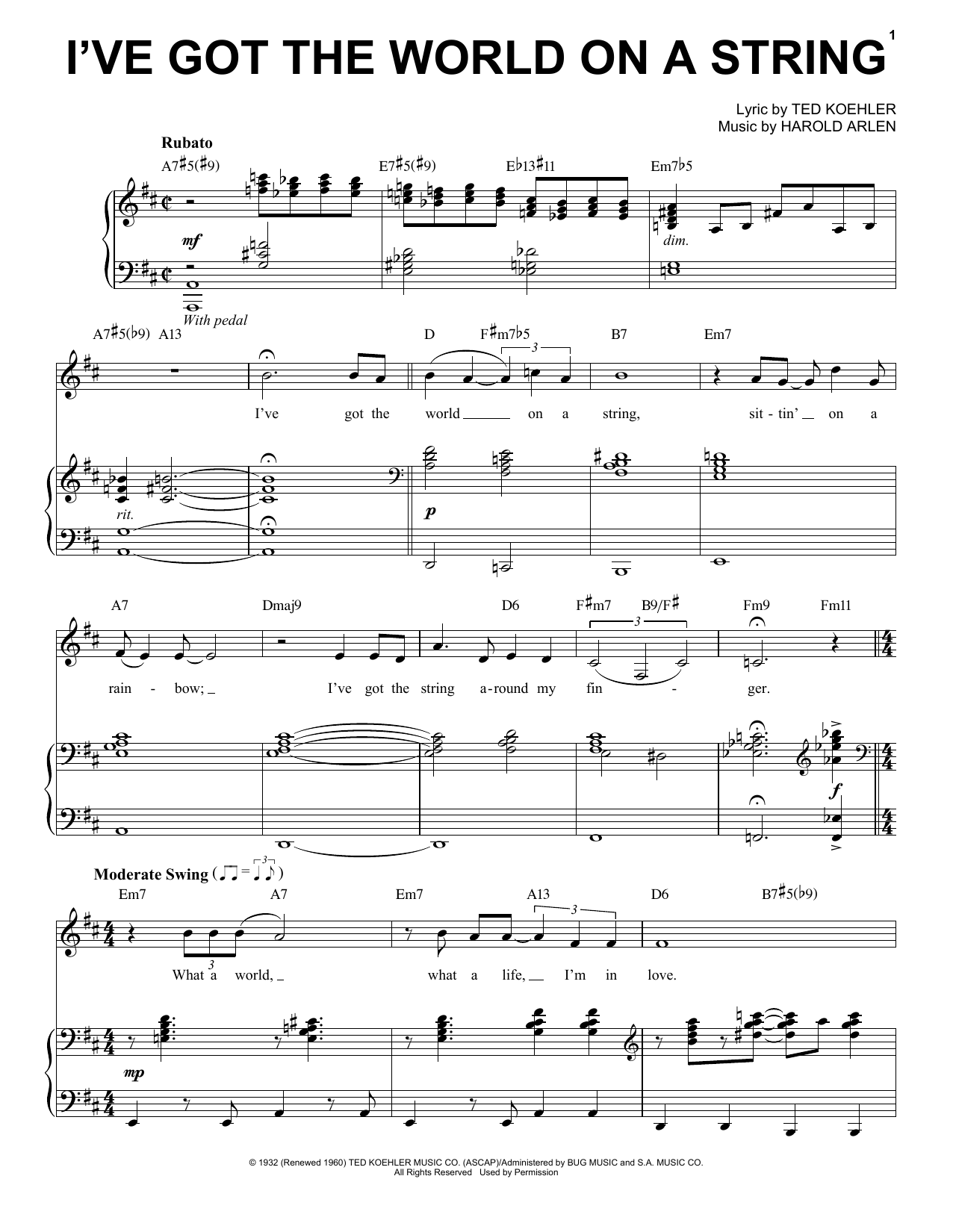 Quick facts I've Got The World On A String about digital sheet music