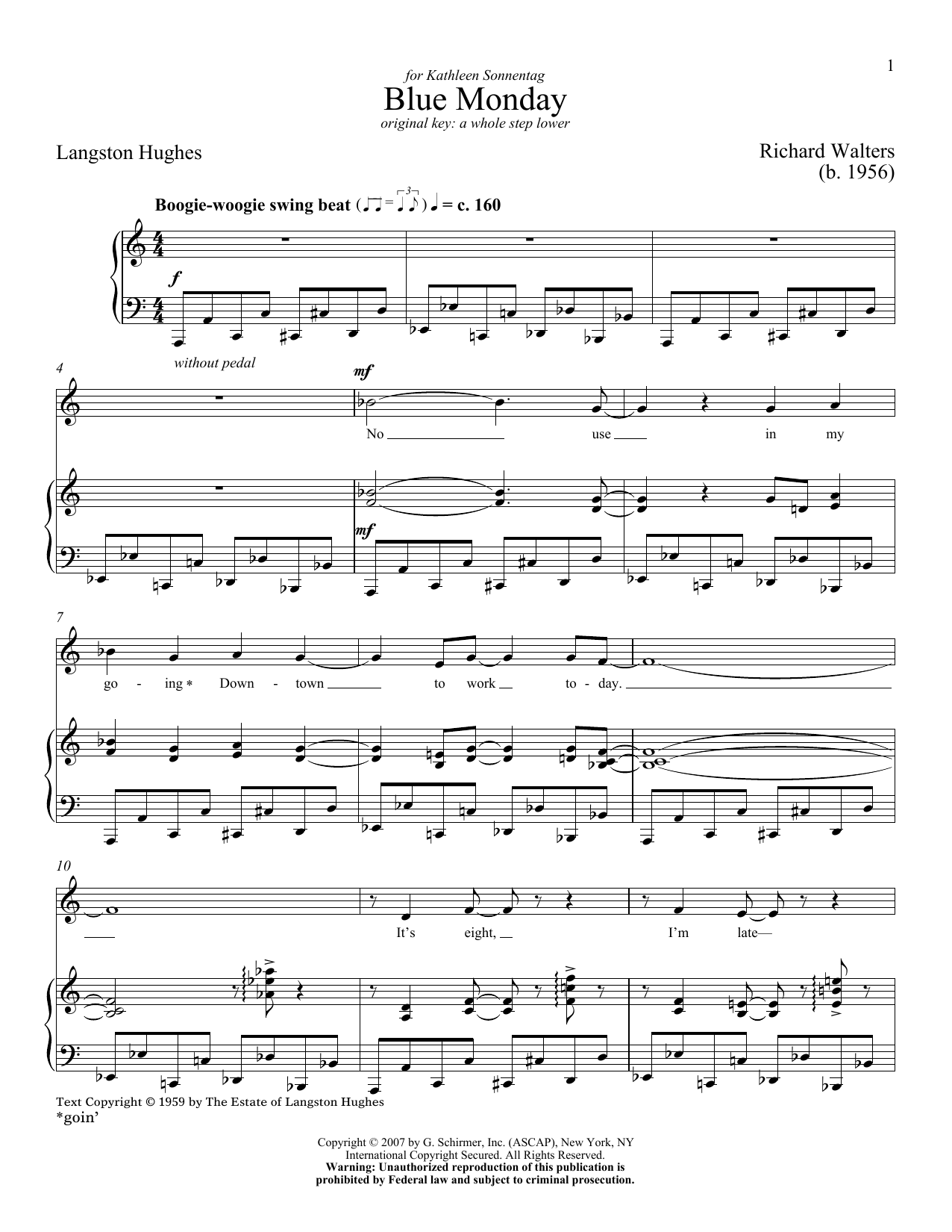 Download or print Langston Hughes Blue Monday sheet music, chords and digital score arranged for Piano & Vocal. This Classical score includes 5 page(s).
