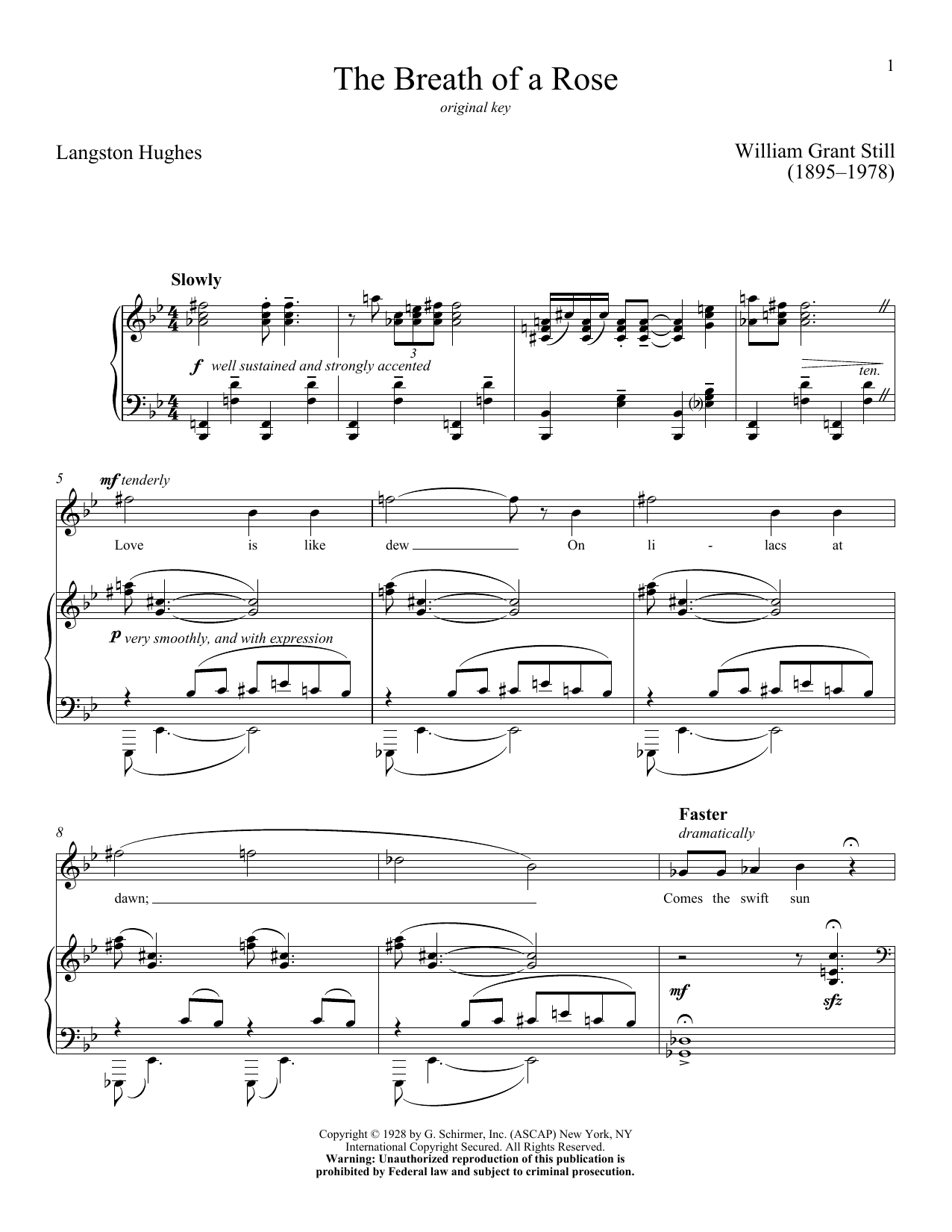 Download or print Langston Hughes The Breath Of A Rose sheet music, chords and digital score arranged for Piano & Vocal. This Classical score includes 4 page(s).