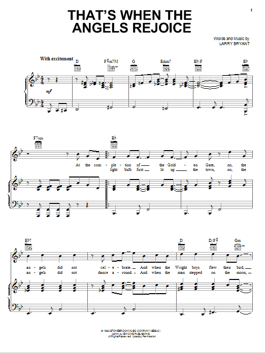 Download or print Larry Bryant That's When The Angels Rejoice sheet music, chords and digital score arranged for Piano, Vocal & Guitar Chords (Right-Hand Melody). This Christian score includes 6 page(s).