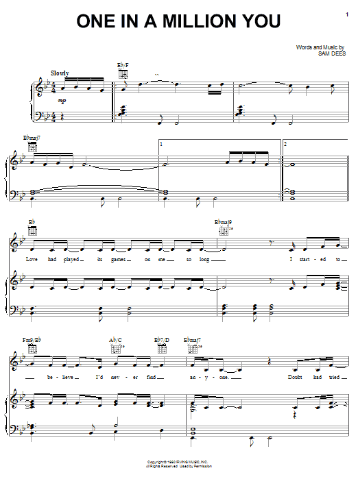 Download or print Larry Graham One In A Million You sheet music, chords and digital score arranged for Piano, Vocal & Guitar Chords (Right-Hand Melody). This Wedding score includes 5 page(s).