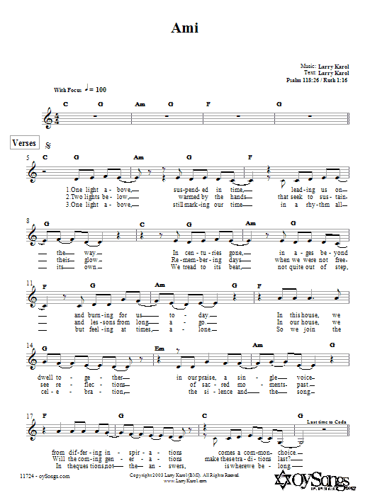 Download or print Larry Karol Ami sheet music, chords and digital score arranged for Lead Sheet / Fake Book. This Traditional score includes 3 page(s).