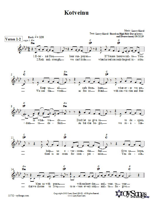 Download or print Larry Karol Kotveinu sheet music, chords and digital score arranged for Lead Sheet / Fake Book. This Traditional score includes 3 page(s).