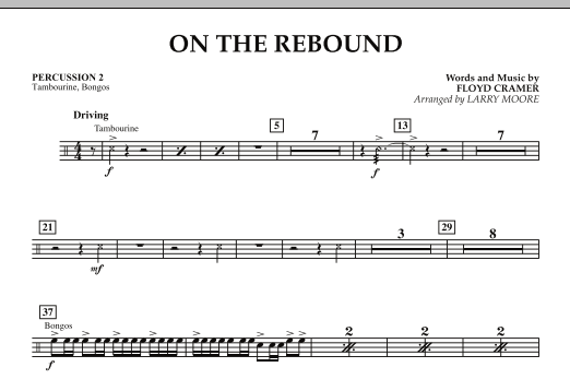 Download or print Larry Moore On the Rebound - Percussion 2 sheet music, chords and digital score arranged for Orchestra. This Country score includes 1 page(s).