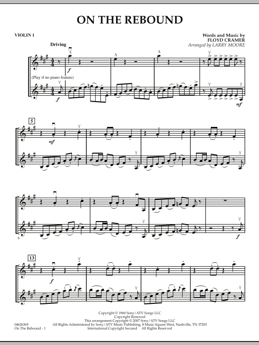 Download or print Larry Moore On the Rebound - Violin 1 sheet music, chords and digital score arranged for Orchestra. This Country score includes 4 page(s).