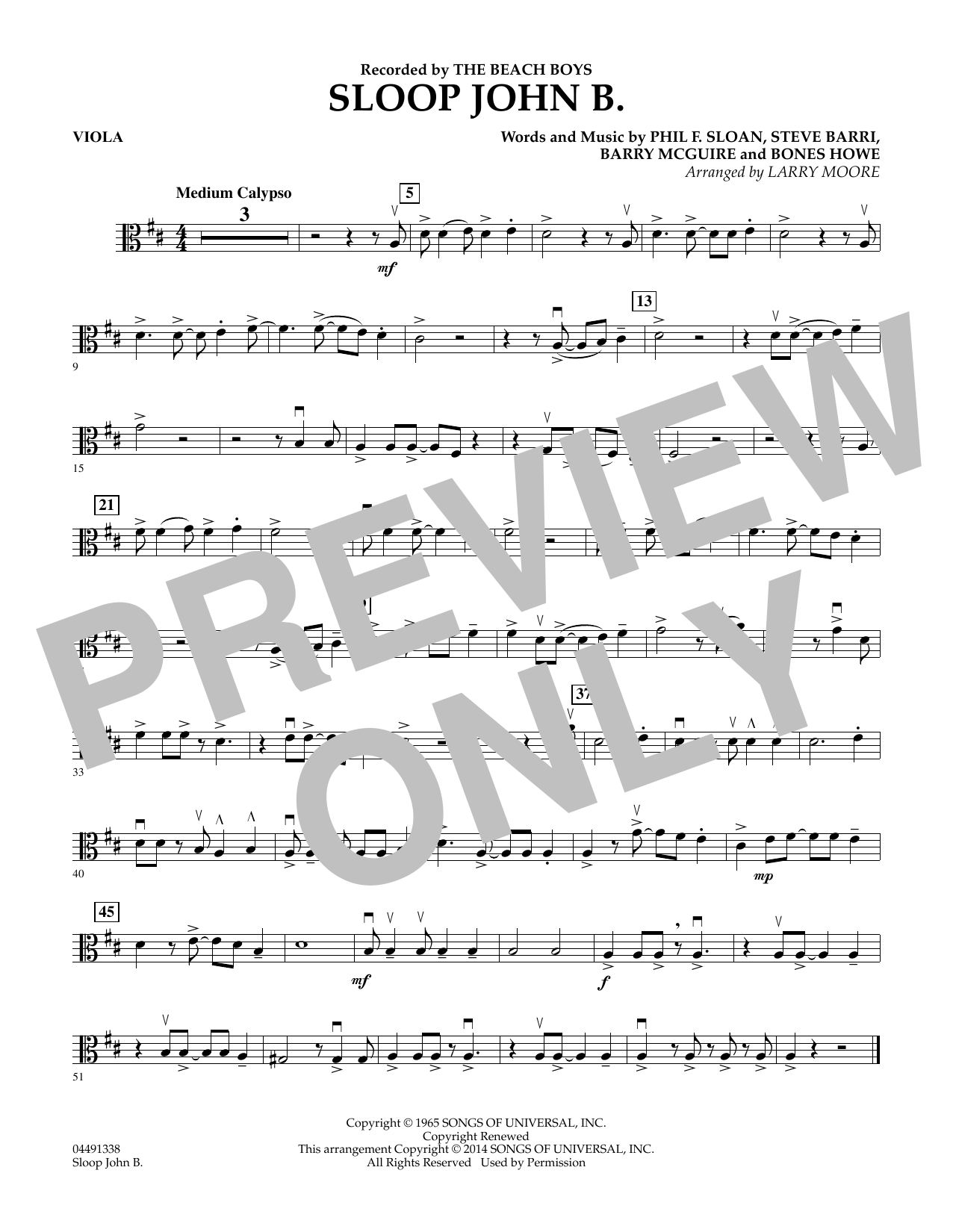 Download or print Larry Moore Sloop John B - Viola sheet music, chords and digital score arranged for Orchestra. This Folk score includes 1 page(s).