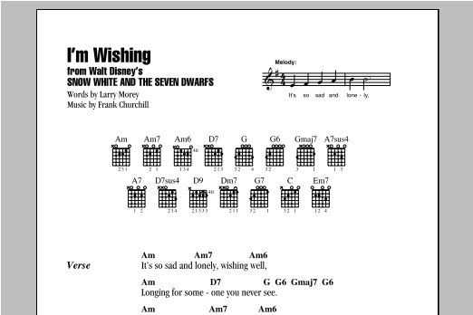 Download or print Larry Morey & Frank Churchill I'm Wishing (from Snow White and the Seven Dwarfs) sheet music, chords and digital score arranged for Trumpet Solo. This Children score includes 1 page(s).