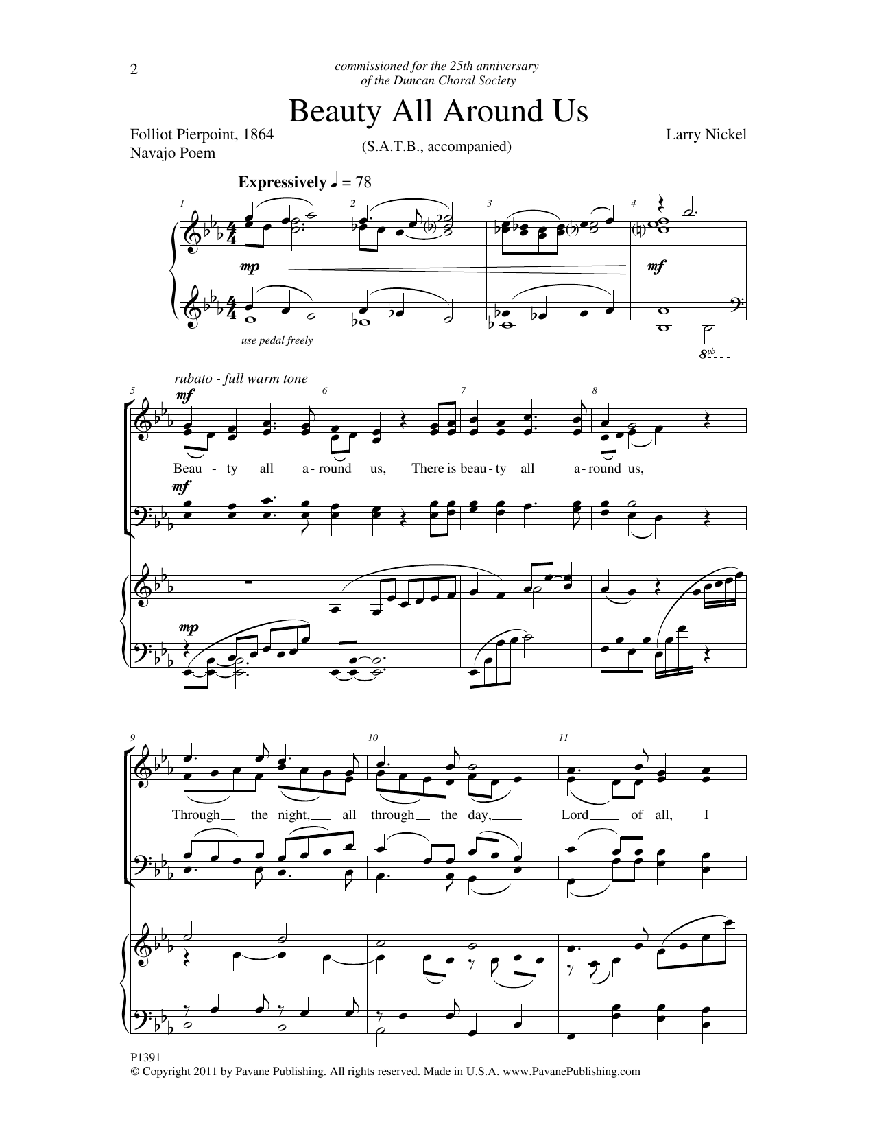 Download or print Larry Nickel Beauty All Around Us sheet music, chords and digital score arranged for SATB Choir. This Sacred score includes 6 page(s).