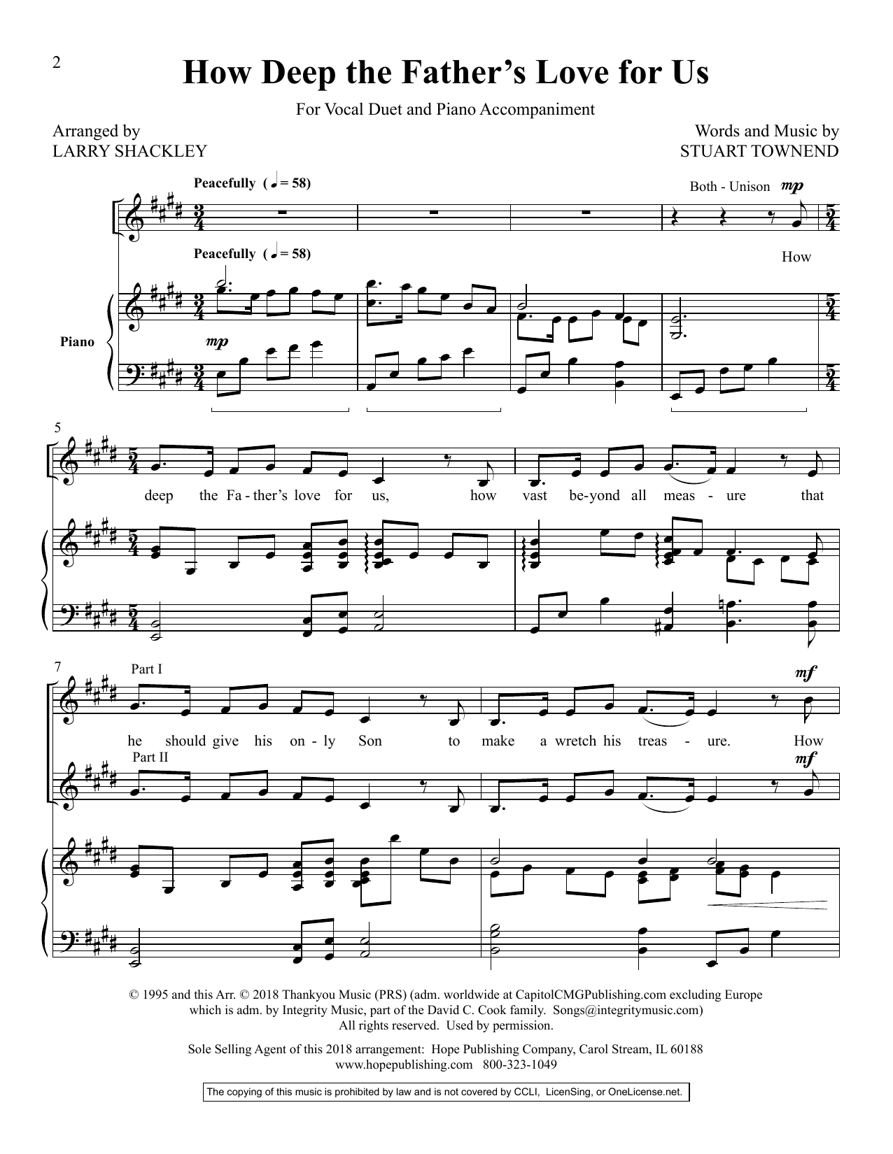 Download or print Larry Shackley How Deep the Father's Love for Us sheet music, chords and digital score arranged for Piano & Vocal. This Christian score includes 5 page(s).