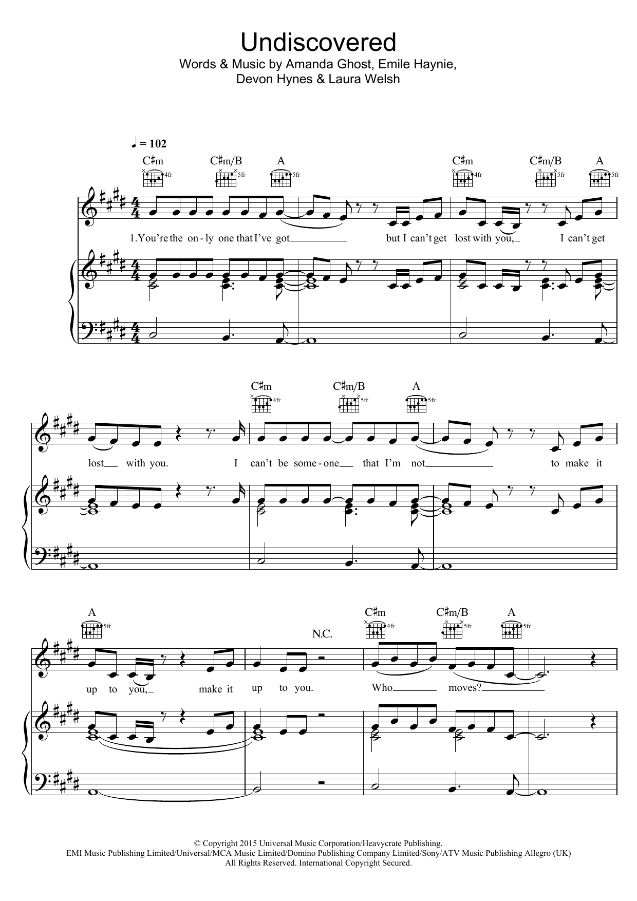 Download or print Laura Welsh Undiscovered (from 'Fifty Shades Of Grey') sheet music, chords and digital score arranged for Piano, Vocal & Guitar Chords. This Pop score includes 5 page(s).
