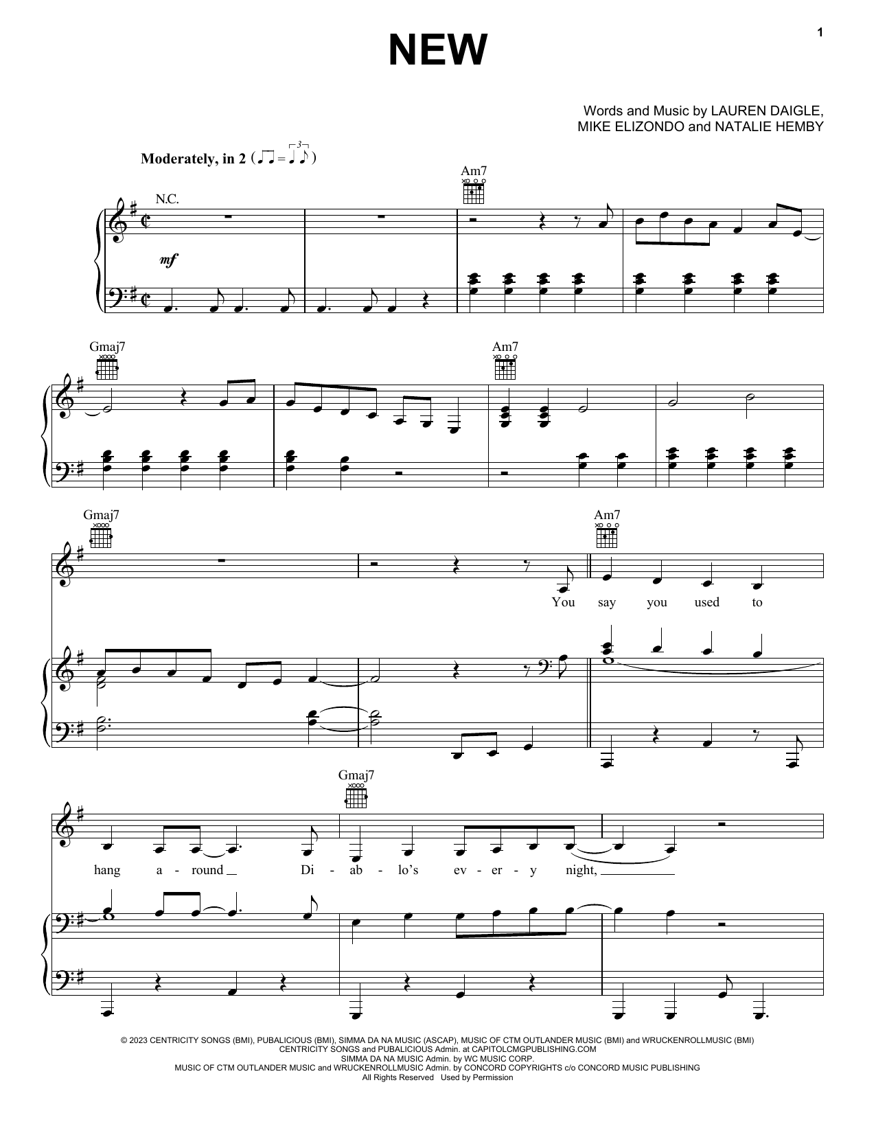 Download or print Lauren Daigle New sheet music, chords and digital score arranged for Piano, Vocal & Guitar Chords (Right-Hand Melody). This Pop score includes 8 page(s).