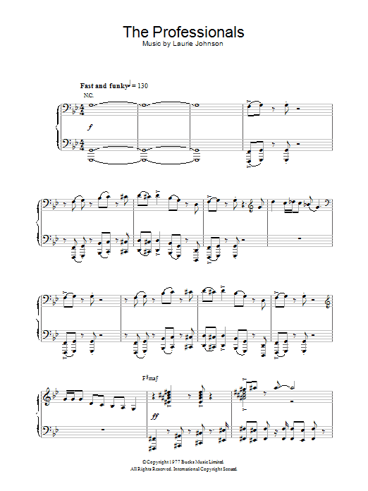 Download or print Laurie Johnson Theme from The Professionals sheet music, chords and digital score arranged for Piano Solo. This Film/TV score includes 2 page(s).