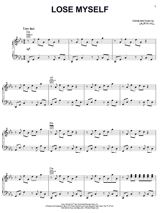 Download or print Lauryn Hill Lose Myself sheet music, chords and digital score arranged for Piano, Vocal & Guitar Chords (Right-Hand Melody). This Film/TV score includes 13 page(s).