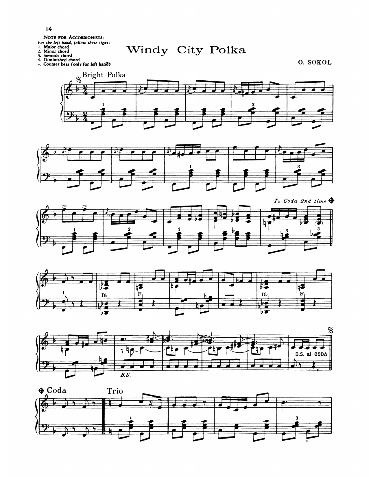Download or print Lawrence Welk Windy City Polka sheet music, chords and digital score arranged for Piano Solo. This Polka score includes 2 page(s).