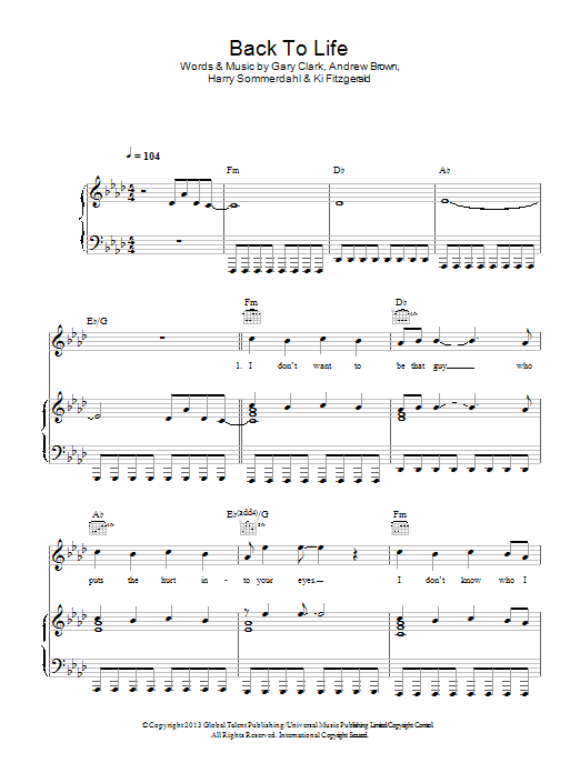 Download or print LAWSON Back To Life sheet music, chords and digital score arranged for Piano, Vocal & Guitar Chords. This Pop score includes 6 page(s).