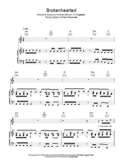 Download or print LAWSON Brokenhearted sheet music, chords and digital score arranged for Piano, Vocal & Guitar Chords. This Pop score includes 7 page(s).