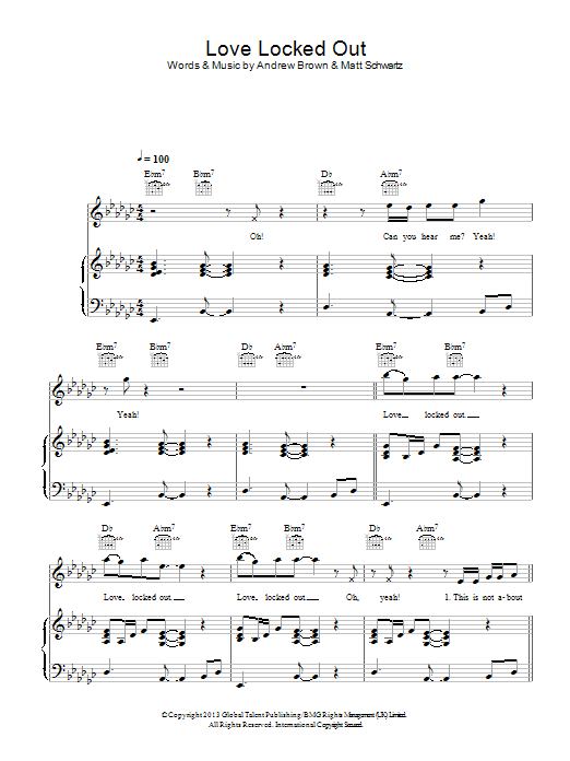 Download or print LAWSON Love Locked Out sheet music, chords and digital score arranged for Piano, Vocal & Guitar Chords. This Pop score includes 6 page(s).
