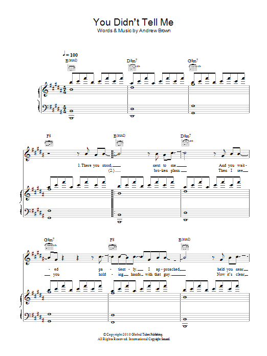 Download or print LAWSON You Didn't Tell Me sheet music, chords and digital score arranged for Piano, Vocal & Guitar Chords. This Pop score includes 5 page(s).