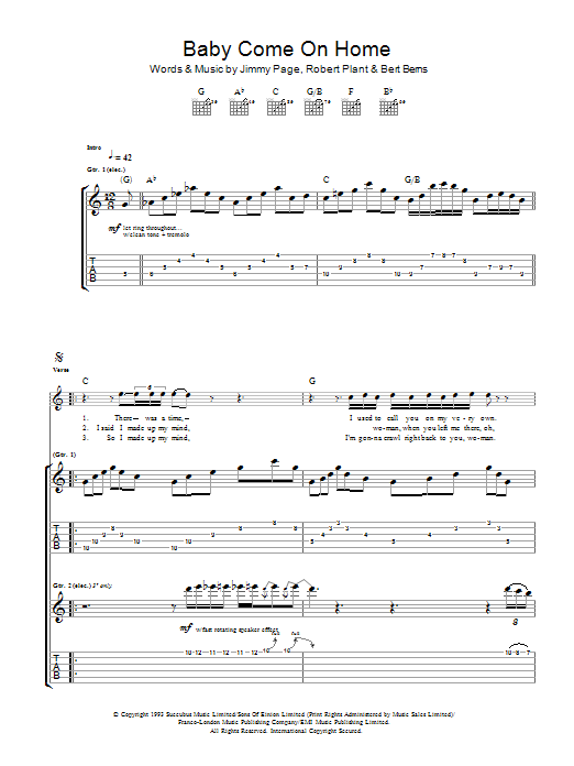 Download or print Led Zeppelin Baby Come On Home sheet music, chords and digital score arranged for Guitar Tab. This Rock score includes 6 page(s).