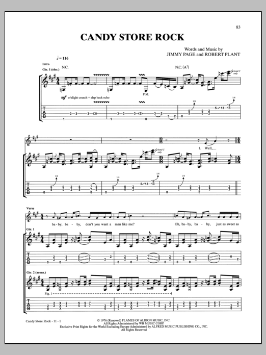 Download or print Led Zeppelin Candy Store Rock sheet music, chords and digital score arranged for Guitar Tab. This Pop score includes 11 page(s).