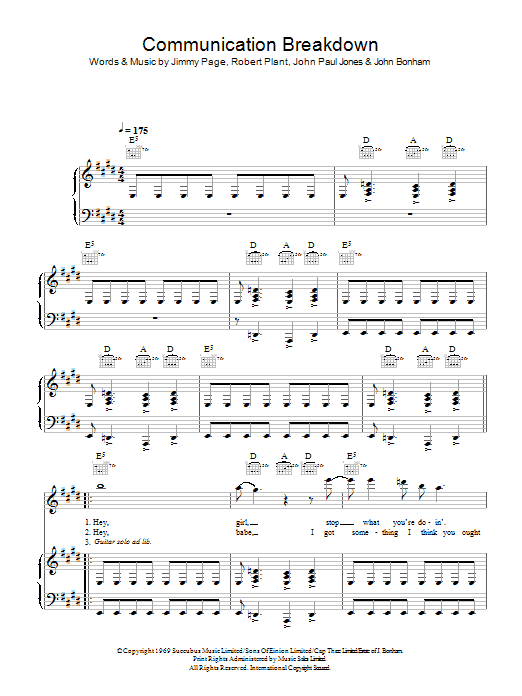 Download or print Led Zeppelin Communication Breakdown sheet music, chords and digital score arranged for Guitar Tab. This Metal score includes 5 page(s).