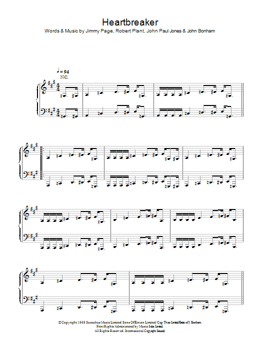 Download or print Led Zeppelin Heartbreaker sheet music, chords and digital score arranged for Guitar Tab. This Pop score includes 12 page(s).