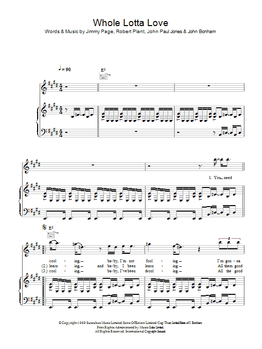 Download or print Led Zeppelin Whole Lotta Love sheet music, chords and digital score arranged for Guitar Tab. This Pop score includes 10 page(s).