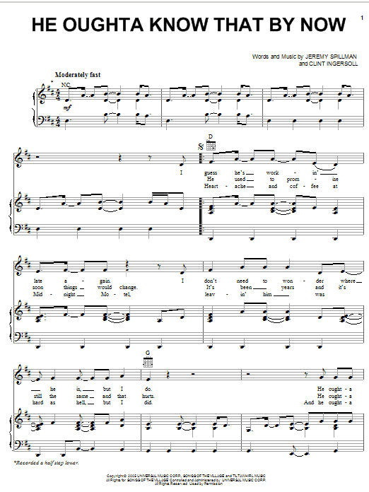 Download or print Lee Ann Womack He Oughta Know That By Now sheet music, chords and digital score arranged for Piano, Vocal & Guitar Chords (Right-Hand Melody). This Country score includes 5 page(s).