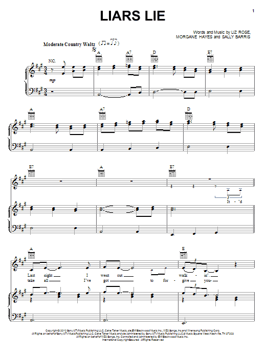 Download or print Lee Ann Womack Liars Lie sheet music, chords and digital score arranged for Piano, Vocal & Guitar Chords (Right-Hand Melody). This Country score includes 9 page(s).