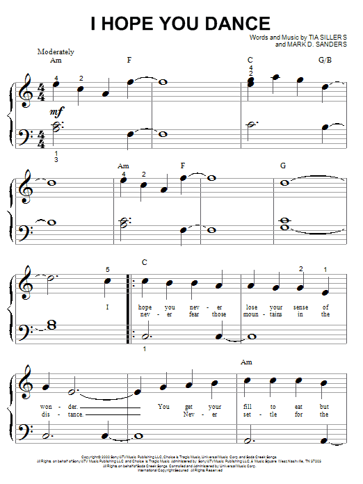 Quick facts I Hope You Dance about digital sheet music