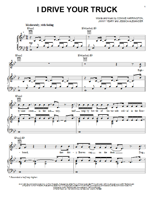 Download or print Lee Brice I Drive Your Truck sheet music, chords and digital score arranged for Piano, Vocal & Guitar Chords (Right-Hand Melody). This Pop score includes 7 page(s).