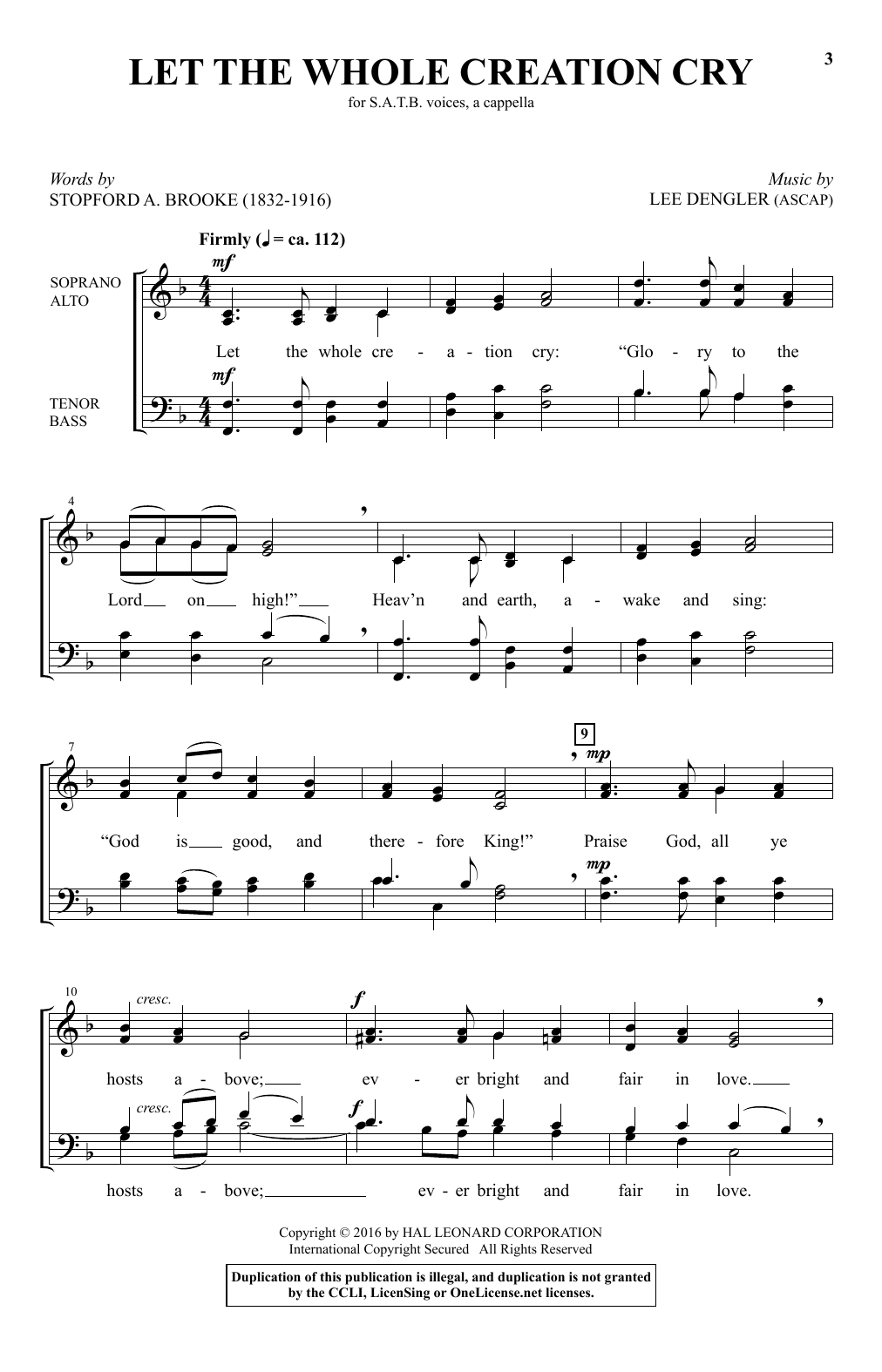 Download or print Lee Dengler Let The Whole Creation Cry sheet music, chords and digital score arranged for SATB Choir. This Sacred score includes 5 page(s).
